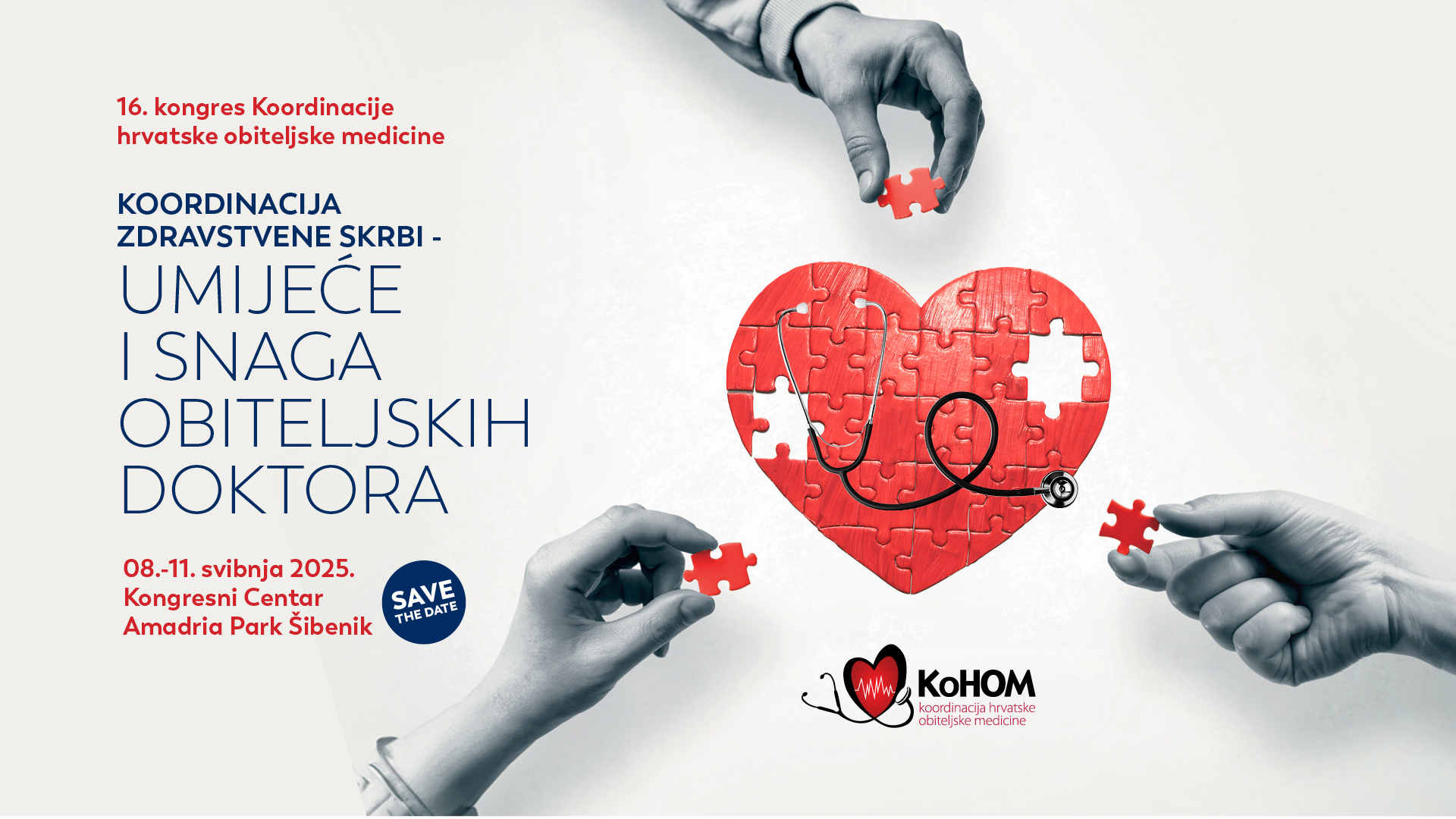 Velika nam je čast i zadovoljstvo pozvati vas na 16. Kongres Koordinacije hrvatske obiteljske medicine koji će se tradicionalno održati u Kongresnom centru Amadria Park Šibenik, od 8.-11. svibnja 2025. godine pod nazivom Koordinacija zdravstvene skrbi – umijeće i snaga obiteljskih doktora.